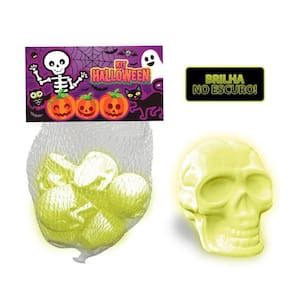 - Marca: Brasilfelx - Modelo: Caveira Neon - Referência: 899549 - 6 unidades - Cor: Neon - Brilha no escuro - Dimensões por unidade: 4 x 3,5 x 2,5 cm - Composição: Plástico - Certificado INMETRO: 003724/2021