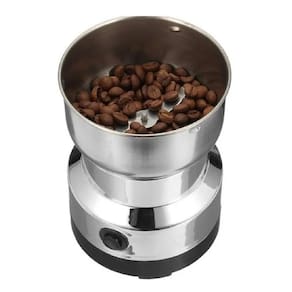 Moedor de Café Elétrico - 110v DIMENSÕES: A-16cm x D10,5cm COMPOSIÇÃO: Aço Inox e Lâmina de Metal Marca: Kadê