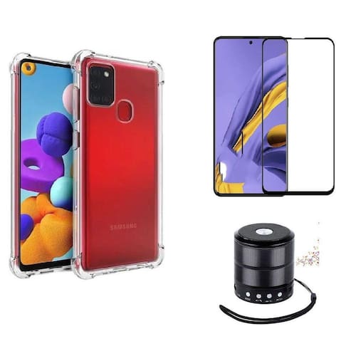 Kit Mini Som Bluetooth Samsung A21s + Capa Anti Impacto + Película Vidro 3D