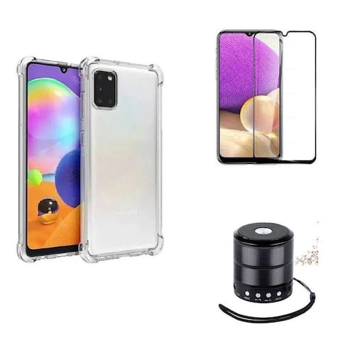 Kit Mini Som Bluetooth Samsung A31 + Capa Anti Impacto + Película Vidro 3D