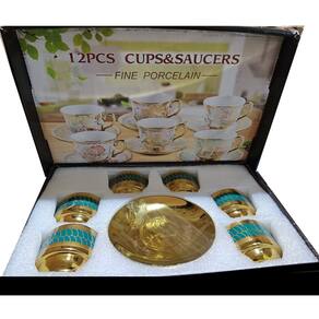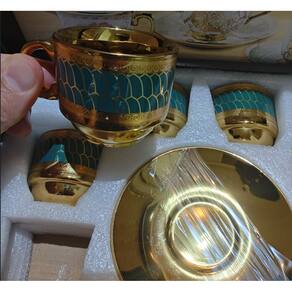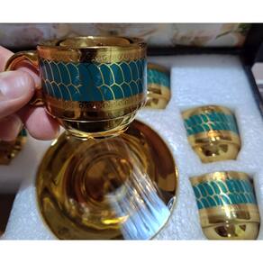 Especificações: Conjunto: 6 xicaras pesquenas de Cafe Expresso 80ml com 6 pires Material: Cerâmica Chinesa Largura do Pires: 10cm Altura da Xicara: 6cm Largura da Xicara: 6cm Quantidade de Peças: 12 Cor Predominante: Dourada com Verde Desenho: Bordado Folhas Linha: Fina Serie: Luxo Marca: Não Informado