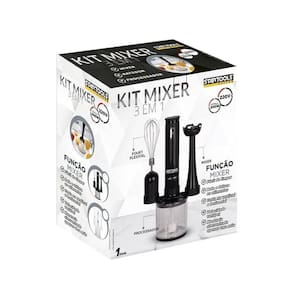 Kit mixer 3 em 1 com processador e batedor. Haste removível em aço inox. Design ergonômico. Peças removíveis para fácil limpeza. Corta na vertical e horizontal. Manuseio com uma mão.Acompanha copo