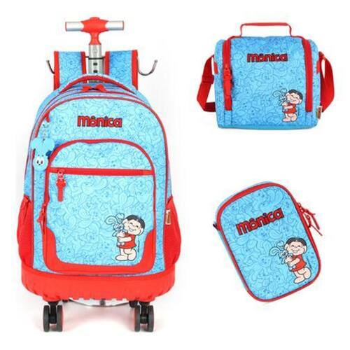 Kit mochilete ou mochila com rodinhas juvenil escolar turma da monica . Mochila toda confeccionada em material de lona poliéster personalizada com parte frontal com desenho do personagem, um material aonde facilita a limpeza e protege os materiais. Possui compartimentos externos frontal, aonde permite separar os matérias com mais organização. Bolsos laterais para garrafa. Possui alça nas costas reguláveis. Possui um sistema de rodinhas de silicone preparado para os obstáculos. Puxador em metal resistente com regulagem de altura. Acompanha lancheira térmica com forro cor cinza, alças reguláveis, alça carona podendo encaixar sobre o puxador da mochila. Porta lápis personalizado box com repartições para encaixar os lápis. Ideal para crianças maiores que não gosta de personagens podendo ser regulável em varias alturas. Especificações e características - material lona poliéster - kit mochila com lancheira e estojo - fechamento zíper grosso e reforçado - puxador em metal - rodinhas de silicone - repartição externa com zíper - bolso externo para garrafa - puxador regulável - alça de costas reguláveis - peso kit 2.420 kg - do fabricante contra defeitos de fabricação : 30 dias - marca: luxcel Medidas / dimensões - mochila - aproximadas - altura 45 cm - largura 33 cm - profundidade 22 cm - peso 1.620 kg Medidas / dimensões - lancheira - aproximadas - altura 19,0 cm - largura 21,0 cm - profundidade 15,0 cm - peso 0.190 gramas Medidas / dimensões - porta lápis - aproximadas - altura 21,0 cm - largura 15,0 cm - profundidade 6,0 cm - peso 0.250 gramas