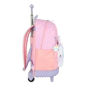 - amplo compartimento principal para melhor organização dos cadernos, livros e apostilas; - 1 compartimentos frontais com fechamento em zíper, para pequenos objetos; - dispõe de alça de mão e alça retrátil reforçada para uma melhor locomoção; - alças acolchoadas e reguláveis caso queira transportar no ombro; - rodinhas de silicone; - chaveiro personalizado - puxadores dos zíperes em borracha; - material: 100% poliéster e forro 100% poliéster.