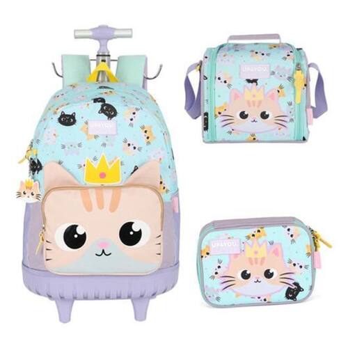Conte com a facilidade das rodinhas , é muito mais fácil para sua filha transportar a mochila, sem contar que já vem acompanhado com o estojo e lancheira térmica