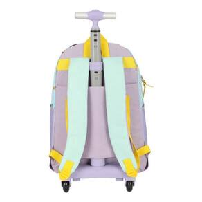 - amplo compartimento principal para melhor organização dos cadernos, livros e apostilas; - 1 compartimentos frontais com fechamento em zíper, para pequenos objetos; - dispõe de alça de mão e alça retrátil reforçada para uma melhor locomoção; - alças acolchoadas e reguláveis caso queira transportar no ombro; - rodinhas de silicone; - chaveiro personalizado - puxadores dos zíperes em borracha; - material: 100% poliéster e forro 100% poliéster.