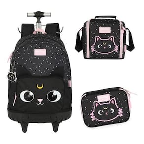 Conte com a facilidade das rodinhas , é muito mais fácil para sua filha transportar a mochila, sem contar que já vem acompanhado com o estojo e lancheira térmica