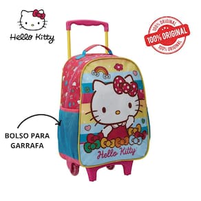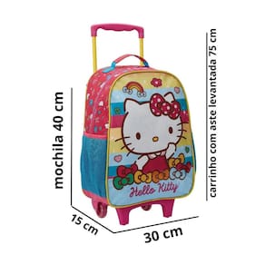 Kit Mochila Com Carrinho e Rodas com Lancheira e Estojo Hello Kitty Cor: Rosa Tamanho: único Genero: Unissex