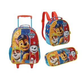 Kit Mochila Carrinho E Rodas Lancheira E Estojo Patrulha