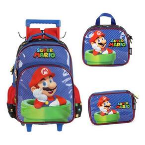 Lançamento escolar volta as aulas 2025 Descrição: Esse lindo kit escolar super mario bros vai fazer sucesso entre a garotada. Esse modelo conta com 2 compartimentos principais e dois bolsos laterais para colocar a garrafa. Possui 2 rodinhas de silicone e 2 apoiadores frontais para mantê-la em pé. Sua haste metálica é retrátil. Informações mochila com rodinhas; Medidas: altura: 41cm x largura: 30cm x profundidade: 14cm Peso: 600gr Capacidade: 17l Material: 30% pvc 70% poliéster Altura da alça retrátil fechada: 45cm Altura da alça retrátil aberta: 73cm Informações lancheira térmica; Medidas: altura: 19cm x largura: 23cm x profundidade: 10cm Peso: 300gr Capacidade: 4,370l Material: 30% pvc 70% poliéster Obs: não acompanha garrafa/potinho Informações estojo; Medidas: altura: 15cm x largura: 22cm x profundidade: 6cm Peso: 160gr Material: 30% pvc 70% poliéster de 6 meses contra defeitos de fabricação. Dicas e cuidados; Proteja os objetos pontiagudos ou cortantes evitando o contato direto com o produto. Guarde o produto e um local seco, fresco e arejado, para evitar a proliferação de fungos que podem danificar o produto. Para limpeza, use apenas água morna e sabão neutro nas partes metálicas somente uma flanela seca. Nunca aplique produtos abrasivos, solventes ou quaisquer agentes químicos. Para secagem, utilize apenas pano seco. Não exponha ao sol e altas temperaturas por um período de tempo prolongado. Apare sempre os fios soltos do tecido, para que eles não se prendam no zíper. Duvida Faça-nos uma pergunta : Marca: Não Informado