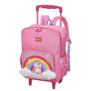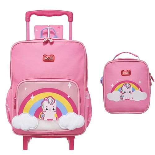 Kit Mochila Carrinho Lancheira Kouii Pacific Uni Unicórnio - Único-Rosa