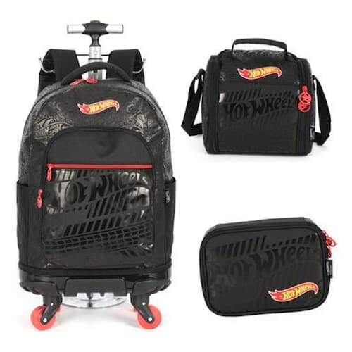 Kit Escolar Mochila com 04 Rodinhas Duplas com giros de 360 + Lancheira Térmica e Estojo duplo