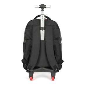 O carrinho é feito em alumínio e as quatro rodinhas possuem giro 360, proporcionado leveza e facilidade ao transporte. O puxador é em forma de T, com botão para regular a altura. Ela também pode ser usada nas costas pois possui alças ajustáveis e macias que se adaptam ao corpo. Vem com alça de mão fixa. Além de Contar com a novidade desse ano, o borrachão na parte da base que proporciona mais durabilidade e proteção do produto.