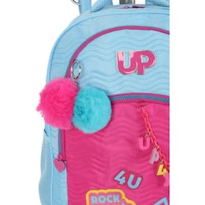 A mochila é bastante espaçosa, perfeita para acomodar livros, ficheiros, cadernos e agenda. Na parte interna são duas divisões, com um compartimento para notebook. Os 3 compartimentos são fechados por zíper.