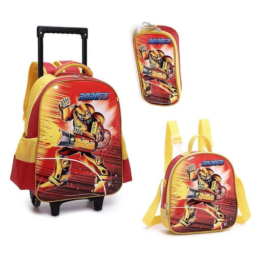 Kit Mochila Com Rodinhas E Lancheira + Estojo Robots