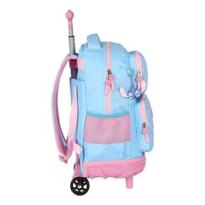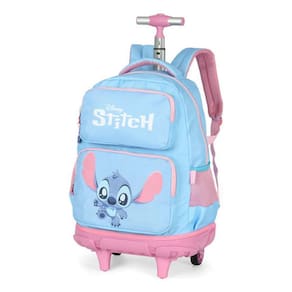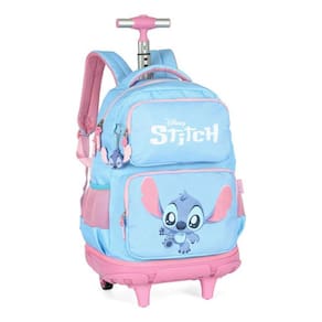 - amplo compartimento principal para melhor organização dos cadernos, livros e apostilas; - 1 compartimentos frontais com fechamento em zíper, para pequenos objetos; - dispõe de alça de mão e alça retrátil reforçada para uma melhor locomoção; - alças acolchoadas e reguláveis caso queira transportar no ombro; - rodinhas de silicone; - puxadores dos zíperes em borracha personalizados; - logo stitch; - material: 100% poliéster e forro 100% poliéster. Acompanha penduricalho exclusivo stitch.