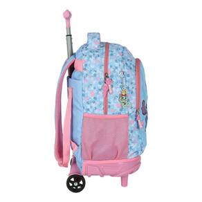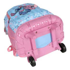 - amplo compartimento principal para melhor organização dos cadernos, livros e apostilas; - 1 compartimentos frontais com fechamento em zíper, para pequenos objetos; - dispõe de alça de mão e alça retrátil reforçada para uma melhor locomoção; - alças acolchoadas e reguláveis caso queira transportar no ombro; - rodinhas de silicone; - puxadores dos zíperes em borracha personalizados; - logo stitch emborrachado; - material: 100% poliéster e forro 100% poliéster. Acompanha penduricalho exclusivo stitch.