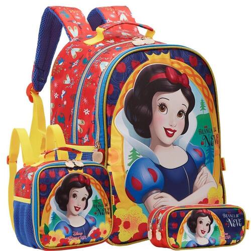 Kit mochila costas 16 branca de neve lancheira estojo duplo - xeryus