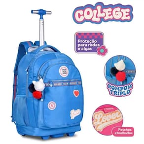 O Kit Mochila De Carrinho Estojo Lancheira Azul Rb24001 Clio é perfeito para quem busca praticidade e estilo. O kit inclui uma mochila de rodinhas, uma lancheira térmica e um estojo box, todos com um design incrível inspirado na tendência college.