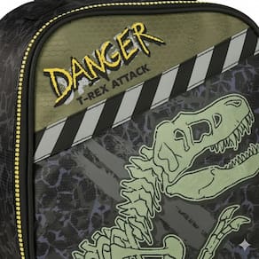 - mochila: estampa vibrante de t-rex, compartimento principal espaçoso, dois bolsos frontais e bolsos laterais telados para garrafinha. Alças acolchoadas e ajustáveis para conforto total.