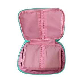 Características do estojo: - Confeccionado em Material Poliéster. - Com puxador de zíper Personalizado. - Com 3 divisórias.