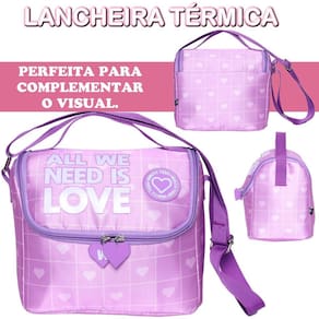 Kit Mochila de Rodinha Bolsa Estojo e Lancheira Coração Este lindo kit de mochila de rodinhas infantil feminina é perfeito para acompanhar as pequenas em todas as aventuras escolares e do dia a dia. Com um design encantador cheio de corações, este conjunto une praticidade, conforto e estilo. Características da Mochila: Versatilidade: Conta com rodinhas resistentes para facilitar o transporte e alças de costas acolchoadas e ajustáveis para maior conforto. Funcionalidade: Possui uma alça de mão prática e um compartimento principal espaçoso com uma divisão interna para manter tudo organizado. Bolsos Práticos: Um bolso externo com zíper para acesso rápido a itens essenciais e bolsos laterais perfeitos para garrafinhas ou pequenos objetos. Detalhes Encantadores: Os puxadores de zíper em formato de coração combinam perfeitamente com a estampa cheia de coraçõezinhos, tornando o kit ainda mais fofo. Dimensões: 42 cm de altura x 30 cm de largura x 18 cm de profundidade. Capacidade: 25 litros. Lancheira: Mantém os lanchinhos sempre organizados e acessíveis. Dimensões: 23 cm de altura x 17 cm de largura x 15 cm de profundidade. Estojo: Ideal para guardar lápis, canetas e outros materiais escolares. Dimensões: 23,5 cm de altura x 16 cm de largura x 6,8 cm de profundidade. Cuidados com o Produto: Evite carregar excesso de peso para preservar a estrutura da mochila. Não insira objetos pontiagudos ou cortantes para evitar danos ao material. Para limpeza, utilize apenas um pano úmido com sabão neutro; não use abrasivos ou solventes químicos. Com este kit incrível, as crianças vão adorar organizar seus materiais com estilo e praticidade. Um presente perfeito para acompanhar o dia a dia com conforto e diversão Marca: Não Informado