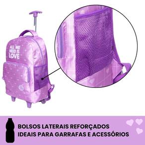 Versatilidade: Conta com rodinhas resistentes para facilitar o transporte e alças de costas acolchoadas e ajustáveis para maior conforto. Funcionalidade: Possui uma alça de mão prática e um compartimento principal espaçoso com uma divisão interna para manter tudo organizado. Bolsos Práticos: Um bolso externo com zíper para acesso rápido a itens essenciais e bolsos laterais perfeitos para garrafinhas ou pequenos objetos. Detalhes Encantadores: Os puxadores de zíper em formato de coração combinam perfeitamente com a estampa cheia de coraçõezinhos, tornando o kit ainda mais fofo. Dimensões: 42 cm de altura x 30 cm de largura x 18 cm de profundidade. Capacidade: 25 litros.
