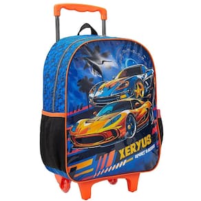 Kit Mochila de rodinhas, lancheira e estojo Xeryus. A mochila conta com frente em PVC, puxadores de metal, alça de mão em nylon, e rodinhas em gel. Lancheira com alça de mão em nylon, alça de costas ajustáveis, frente em PVC e etiquetas personalizadas. O estojo conta com frente em PVC e puxadores em metal, além de etiquetas personalizadas .