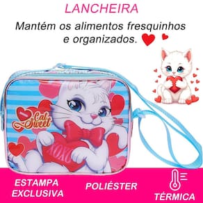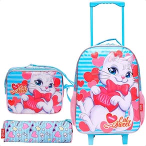 Prepare-se para encantar com o kit de mochila de rodinhas feminina Com uma charmosa estampa de listras, corações e uma adorável gatinha branca, o tema Cat Sweet é perfeito para meninas que amam estilo e fofura. Características da Mochila com Rodas: Design Encantador: Estampa única com listras coloridas, corações e uma linda gatinha branca, trazendo alegria e delicadeza ao visual. Mobilidade e Praticidade: Rodas de silicone resistentes, proporcionando deslocamento suave e silencioso. Alça de mão para maior versatilidade. Espaço e Organização: Compartimento principal amplo com zíper, ideal para acomodar livros, cadernos e materiais escolares. Dois bolsos laterais perfeitos para garrafas ou itens de acesso rápido. Dimensões: 41 cm de altura x 30 cm de largura x 17 cm de profundidade. Características da Lancheira: Isolamento Térmico: Mantém os alimentos frescos e prontos para o consumo. Divisão Única: Espaçosa para organizar lanches e snacks com praticidade. Características do Estojo: Compacto e Funcional: Divisão única para organizar lápis, canetas e acessórios escolares. Dimensões: 23,5 cm de comprimento x 7 cm de altura. Por que escolher este kit Estilo Fofinho e Moderno: A combinação das listras, corações e a delicada gatinha fazem deste kit uma escolha adorável e cheia de personalidade. Funcionalidade e Conforto: Projetado com materiais de alta qualidade, espaço eficiente e recursos que tornam o dia a dia mais prático. Durabilidade e Beleza: Rodas de silicone e materiais resistentes garantem um produto durável e charmoso. Deixe a rotina escolar cheia de doçura e organização Com o tema Cat Sweet, este kit é perfeito para meninas que desejam brilhar em cada detalhe. Marca: Não Informado