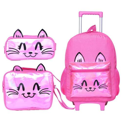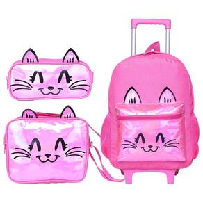 Este kit de mochila de rodinhas feminina é a combinação perfeita de encanto, praticidade e estilo Com um design encantador em rosa com glitter sutil, estampa fofa de gatinho e detalhes holográficos no bolso externo, ele é ideal para meninas que amam brilhar e se destacar. Características da Mochila: Design Encantador: Rosa com glitter suave e estampa de um adorável gatinho que conquista corações. O bolso externo com detalhes holográficos dá um toque moderno e mágico. Praticidade e Conforto: Rodinhas resistentes para facilitar o transporte. Alça de mão funcional para maior versatilidade. Dois bolsos laterais perfeitos para garrafas ou itens de fácil acesso. Organização Essencial: Compartimento principal amplo para guardar materiais escolares. Bolso externo com zíper para itens menores. Dimensões: 41 cm de altura x 30 cm de largura x 17 cm de profundidade. Características da Lancheira: Isolamento Térmico: Mantém os lanches frescos e prontos para o consumo. Praticidade em Tamanho Compacto: Uma divisão espaçosa para alimentos e bebidas. Dimensões: 22 cm de comprimento x 6,5 cm de altura. Características do Estojo: Compacto e Prático: Divisão única perfeita para armazenar lápis, canetas e pequenos acessórios escolares. Dimensões: 23,5 cm de comprimento x 7 cm de altura. Por que escolher este kit Estilo Encantador: O glitter, o gatinho e os detalhes holográficos tornam este kit um acessório único e adorável para qualquer ocasião. Funcionalidade e Conforto: Com espaço suficiente e design prático, ele é perfeito para manter tudo organizado. Durabilidade Garantida: Feito com materiais de alta qualidade, é ideal para acompanhar as crianças em sua rotina diária. Leve brilho e fofura para o dia a dia escolar Este kit é perfeito para meninas que desejam unir estilo, praticidade e um toque mágico em cada detalhe. Marca: Não Informado