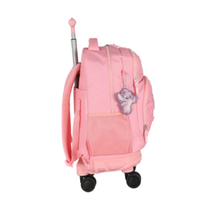 Destaques do Produto: Estampa exclusiva do Stitch em estilo fofo e moderno Carrinho com rodinhas 360° que garantem estabilidade e leveza Alça retrátil em alumínio com ajuste de altura Zíperes personalizados e chaveiro da Angel Laterais em tela para garrafinha
