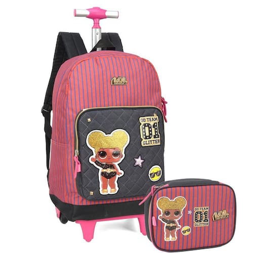 Kit mochila de carrinho e Estojo Soft Box Lol surprise A mochila MC51314LO possui dois bolsos, um principal amplo, e um médio frontal; Conta com alças acolchoadas e reguláveis; Apoio Frontal; Puxadores personalizados; Detalhes frontais em glitter; Patche logo Lol dourado; Puxador superior de mão. Puxador com trava. Ótimo material, mochila resistente, perfeita para volta as aulas. Dimensões Altura: 45 cm Largura: 29 cm Profundidade: 15 cm O estojo ET40466LO possui duas repartições, ajudando a manter tudo sempre mais organizado; Possui puxadores personalizados; Patche logo Lol dourado; Combina perfeitamente com a mochila. Dimensões Altura: 16 cm Largura: 22 cm Profundidade: 5 cm Marca: Não Informado
