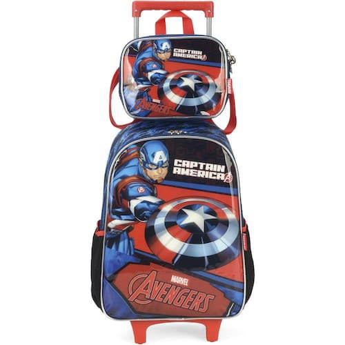 KIT MOCHILA DE RODINHAS E LANCHEIRA LUXCEL AVENGER