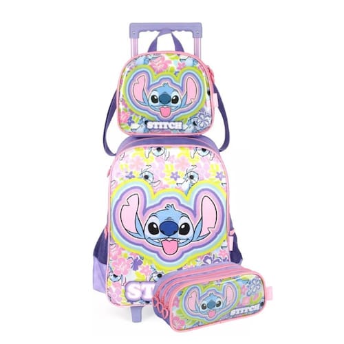 A mochila de rodinhas escolar infantil Stitch é a escolha perfeita para os pequenos que adoram o adorável personagem de Lilo & Stitch! Com um design colorido e divertido, ela transforma o transporte dos materiais escolares em uma experiência cheia de charme.