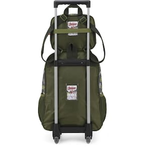 Kit mochila de rodinhas com bolsos laterias em tela com elástico, alças de costas espumadas e reguláveis, silk frontal, bolso frontal com zíper, alça de mão. Lancheira estampada com alça de costas e alça de mão, além de etiquetas personalizadas.