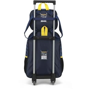 Kit mochila de rodinhas com bolsos laterais em tela com elástico, alças de costas espumadas e reguláveis, silk frontal, bolso frontal com zíper, alça de mão.