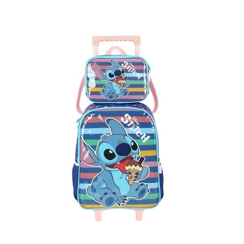 KIT MOCHILA DE RODINHAS E LANCHEIRA LUXCEL STITCH