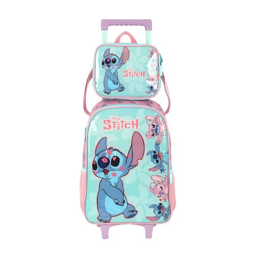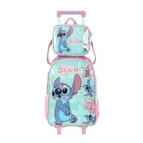 KIT MOCHILA DE RODINHAS E LANCHEIRA LUXCEL STITCH