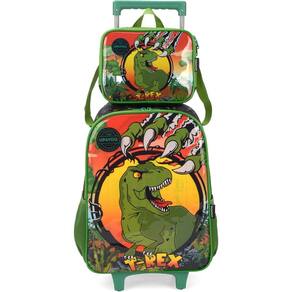 KIT MOCHILA DE RODINHAS E LANCHEIRA LUXCEL UP4YOU T-REX