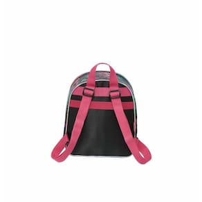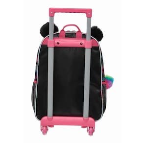 Coleção confeccionada em sarja fina de poliéster. Painel frontal com impressão com gradiente em PU com glitter. Orelhas 3D costuradas no painel frontal. Puxadores de zíper de metal. Bolso frontal em lantejoulas reversíveis rosas iridescentes. Chaveiro com pompom no painel frontal. Patch de PU holográfico iridescente com logo em relevo. Etiqueta de identificação impressa no painel das costas. Conta também com uma lancheira toda personalizada da personagem, além de etiquetas personalizadas.