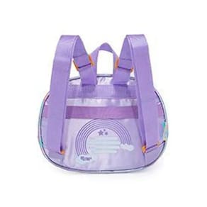 Coleção confeccionada em sarja fina de poliéster, com estampa corrida em foild dourado. Painel frontal com impressão transfer com gradiente em PU com glitter. Orelhas 3D em paetê costuradas no painel frontal. Puxadores de zíper de metal. Bolso frontal em lantejoulas reversíveis rosas iridescentes. Chaveiro com pompom no painel frontal. Patch de PU holográfico iridescente com logo em relevo. Etiqueta de identificação impressa no painel das costas. Conta também com uma lancheira toda personalizada da personagem, além de etiquetas personalizadas.