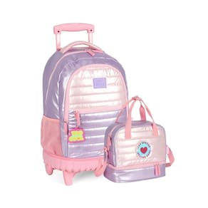 Contém: 01 un - mochila de rodinhas rosa up4you - luxcel 01 un - lancheira térmica rosa up4you - luxcel