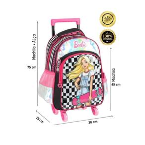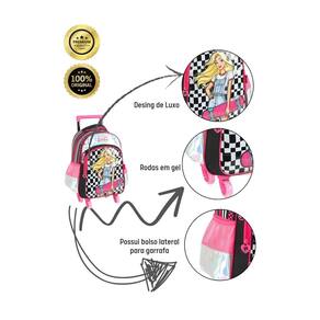 Kit Mochila Escolar 2EM1 Rodas Costas + Lancheira Térmica Barbie Oficial Mochila de rodinha: