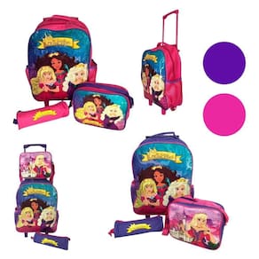 Kit Mochila Escolar com Rodinha 3 Peças Princesas Rosa/Roxo Kit Mochila Infantil com 3 Peças Princesas Rosa / Roxo ===================================== Esse kit é perfeito para atender todas as necessidades da criança. Vem com uma mochila de rodinhas com compartimento principal espaçoso ideal para acomodar os livros, cadernos e materiais escolares no geral e mais dois bolsos laterais de redinha para garrafas. Vem com uma lancheira térmica com espaço suficiente para levar todo lanchinho da criança e mantê-los frescos, tem alça para ser carregada na mão ou no ombro e também vem com alça para encaixe na mochila. Além disso, vem com um estojo para acomodar todos os lápis de cor e canetinhas. ===================================== Contém: 01 Mochila 01 Lancheira 01 Estojo Especificações: - Material: Poliéster - Medida Mochila: 41cm x 31cm x 12cm - Medida Lancheira: 18cm x 22cm x 9cm - Medida Estojo: 23cm x 7cm - Capacidade Mochila: 15 Litros - Com Rodinha: Sim - Peso: 800 gramas - Cor: Rosa ou Roxo enviado de forma aleatória, conforme - Estampa: Princesas CUIDADOS: - Guarde-a em um local arejado - Para a limpeza utilize apenas pano úmido e sabão neutro - Não imergir água - Não utilizar componentes químicos - Evite colocar excesso de peso - Evite dobrar para que a estampa permaneça nova ===================================== Devido à diferença entre monitores e iluminação diferentes, pode haver variação na tonalidade apresentada no anúncio. Medidas muito aproximadas.