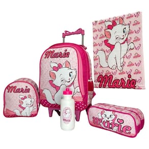 Características mochila: Material: 70% poliéster e 30% pvc 2 compartimentos com 2 zíperes Compartimento nas laterais para garrafas Alças reforçadas Alça superior de mão Puxadores personalizados Bolsos laterais porta cantil Alças ajustáveis Rodas de silicone e apoio frontal Carrinho embutido