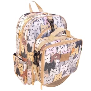 Kit mochila escolar infantil completo menina menino bolsa resistente com lancheira e estojo de 2 compartimentos - miellu Estampa: gato Kit mochila infantil