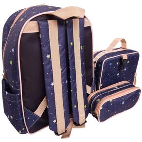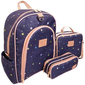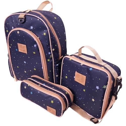 Kit mochila escolar infantil completo menina menino bolsa resistente com lancheira e estojo de 2 compartimentos - miellu Estampa: estrelas Kit mochila infantil