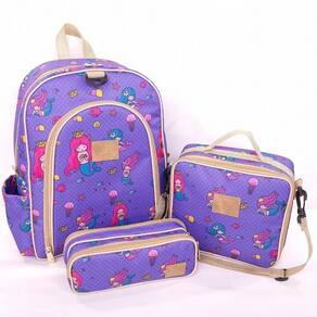 Kit mochila escolar infantil completo menina menino bolsa resistente com lancheira e estojo de 2 compartimentos - miellu Estampa: sereia Kit mochila infantil