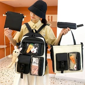 Prontinha para o dia a dia das pequenas! Nosso Kit Infantil 4 em 1 chegou com tudo: mochila grande com espaço para o notebook, estojo, bolsa e uma mini bolsa lateral super versátil!