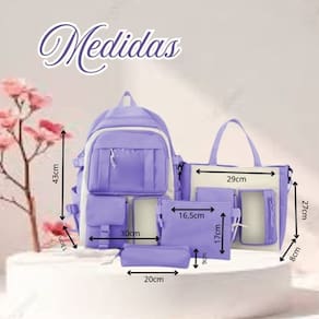 Esse conjunto infantil vem com tudo que a rotina escolar (e os passeios!) precisam: Mochila principal: Dimensões: 40cm (A) x 30cm (L) x 12cm (P) 1 bolso principal espaçoso 1 bolso traseiro com zíper 1 bolso frontal grande com zíper 1 bolso frontal menor com zíper 2 bolsos laterais (ideal para garrafinhas) 1 bolso interno para notebook